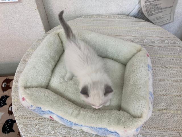 お父さん猫ちゃんは動きまわるため、写真が撮れなかったのですが、毛色はブルーバイカラーです。