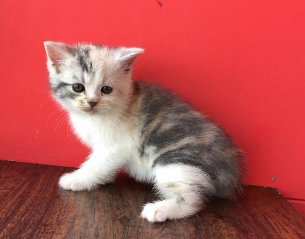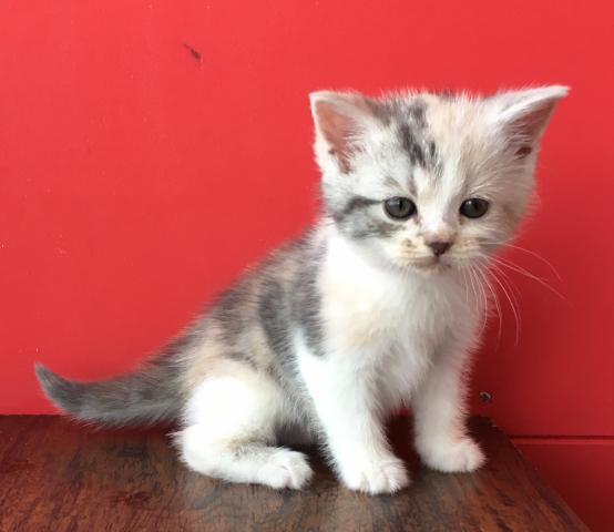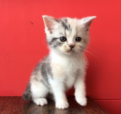 可愛いお顔をしたダイリュートキャリコのマンチカンです(*^^*)