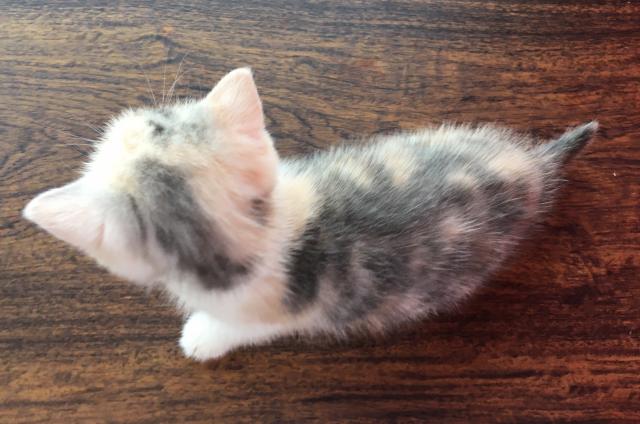 毛色は三毛の中でも、珍しいダイリュートキャリコの毛色をしていて、優しい雰囲気を持った大人しい子です♪♪