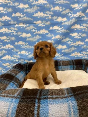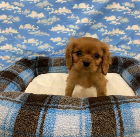 キャバリアは名前にキングとつくように、昔、貴族に、愛され広まったと言われるとても上品なわんちゃんです。この子もとても優しく、上品、おっとりとした性格をしています。抱っこされたまま眠っちゃったりなんてことも! そして、綺麗にルビーの色!珍しいですよ!♡