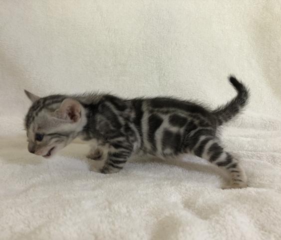 はつきりスポットが美しいシルバーベンガルの男の子です。