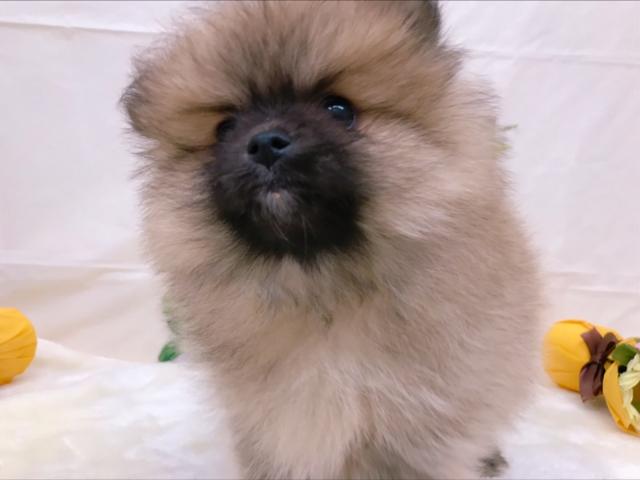 ふわふわのとっても可愛いポメちゃんです♡タヌキ顔ですが大人になるにつれお顔の黒い色は抜けていくかと思われます!とっても人懐っこい子なのでお家に慣れるのも早いかもしれません!