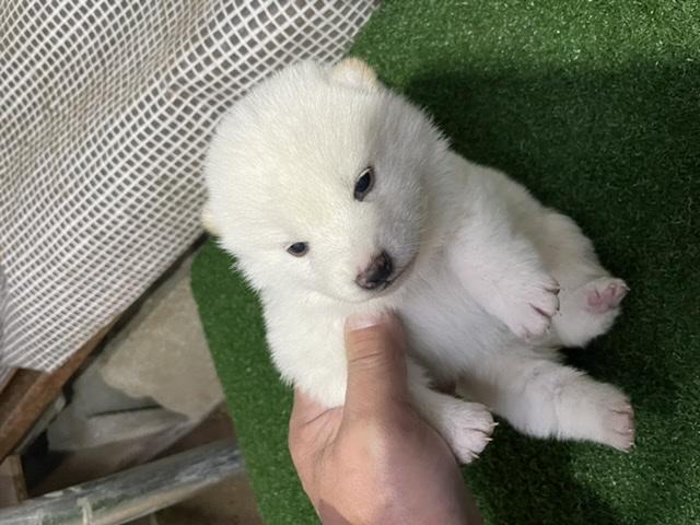 可愛らしい純白の白柴です。