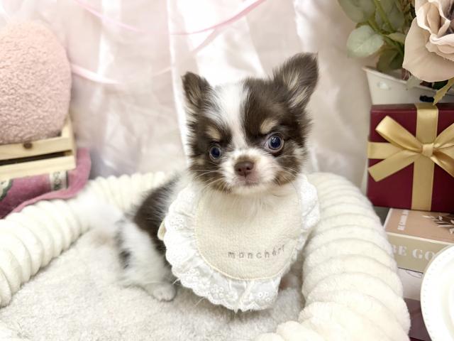 とっても甘えん坊さんで、愛嬌があるチワワの男の子。甘えポーズが可愛くて性格は控えめな子です。是非会いに来て下さい。