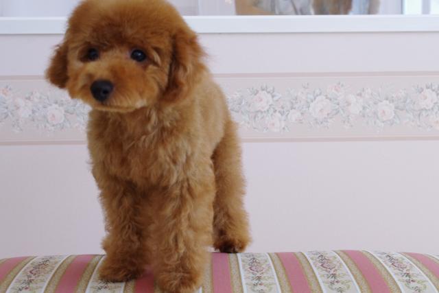 ディープレッドの濃い毛色にモコモコクリクリの巻き毛がとってもラブリー☆