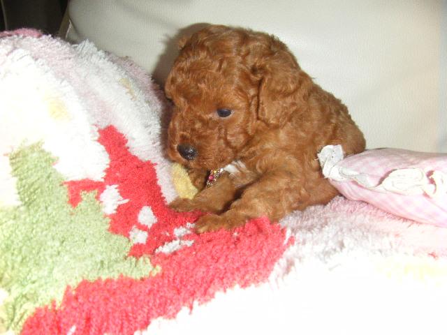 一般家庭で、トイ・プードルの自家繁殖をしています。人気のテディーベアカットの似合う、丸顔のコから、小ぶりのタイニーサイズの子犬達が生まれています。