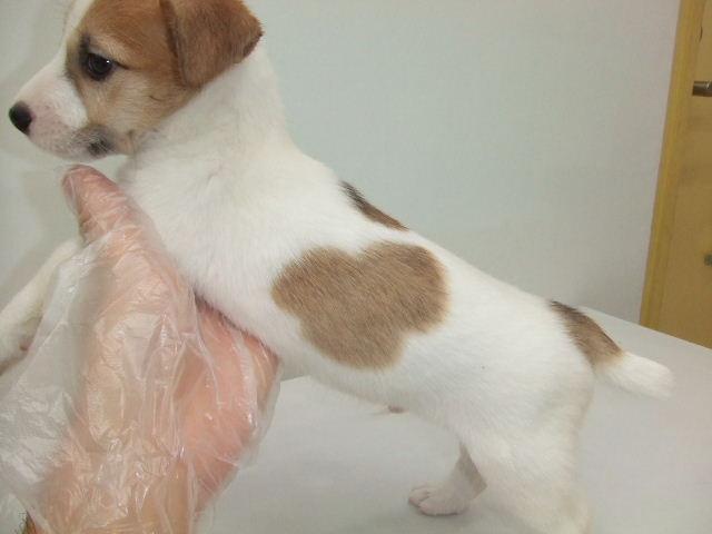 身体に隠れミッキーの模様があるジャックラッセルテリアの男の子。