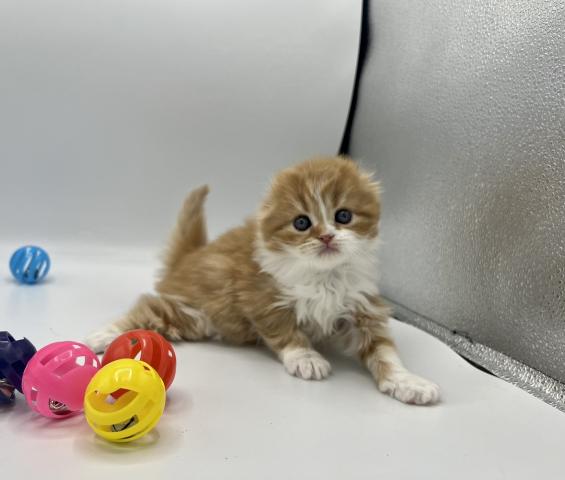毛色はスコティッシュフォールドでもっとも人気が高いレッド系♪