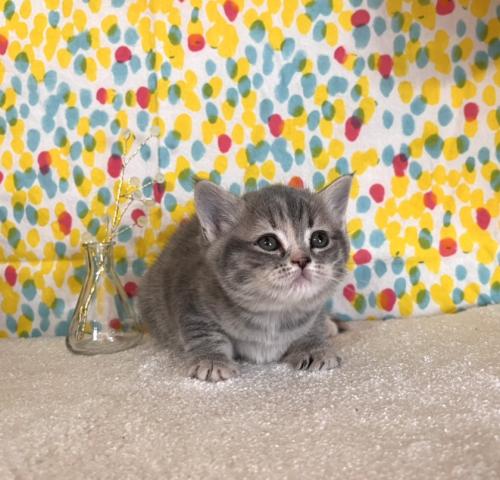 立ち耳、まん丸体型が可愛いとっても元気なブルーグレーの女の子です。