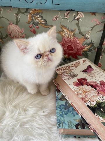 ホワイト系カラーの可愛いエキゾチックショートヘアの女の子です。