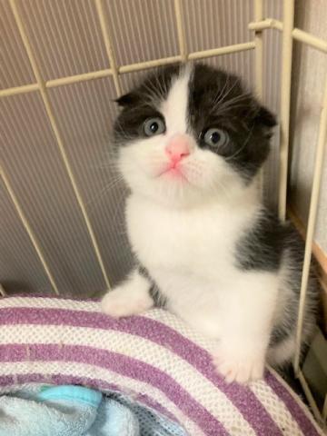 まん丸なお顔にしっかりと折れた小さなお耳です。