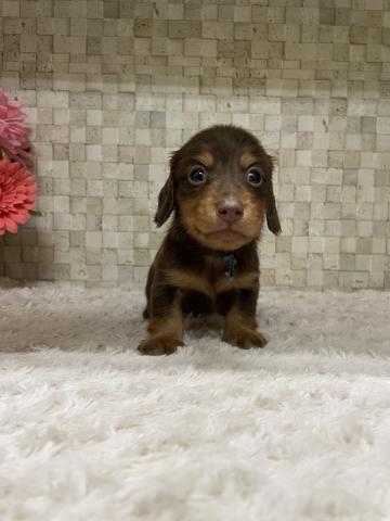 当店のイケメンダックスのライム君と超絶美形のイヴさん夫婦が今回もまた理想的なチョコレート(ブラウン)系の子犬を産んでくれました。