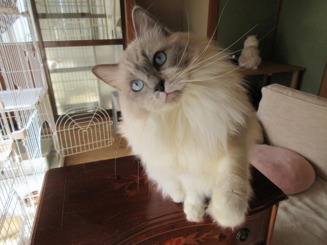 長毛で毛並みの良い大きなブルーアイズ。