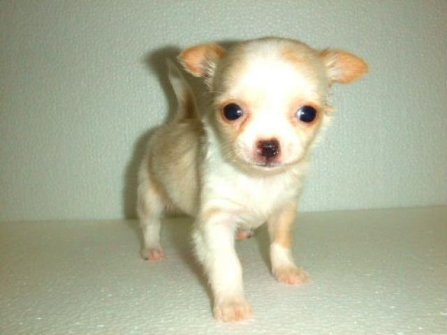 超極小サイズ、チワワロングコート、毛色はクリーム&ホワイトの女の子。