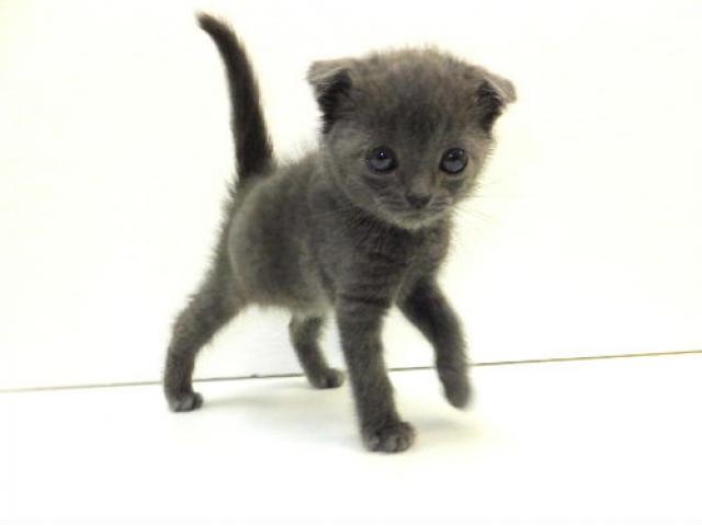 レアカラー、ブルーの毛色をしたスコニャンの女の子。