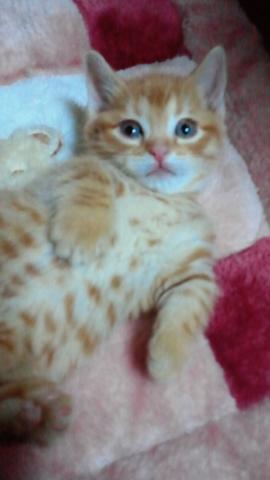 4/7生まれの女の子です。足はかなり短めの短足タイプの子猫です。両親は共にマンチカンです。性格はまだまだこれからですが、現時点では一緒に生まれた兄姉の中で、1番甘えたで、どちらかというとまとわりついて離れない子です。そういう意味では少々、手がかかるかもしれません(笑)。これからのしつけ次第かと思います。価格には、1度目のワクチン代や公式キャットクラブの血統書代、約1週間分のご飯代ほか、いろいろ含んでおります。また、お引き渡しの際は、動物病院内で検診を受け、シャンプーなどして頂いてからお渡しいたします。決してお安い価格ではございませんので、是非ご見学くださいませ。猫のためにも陸送・空輸はお受けしません。見て、触れてよくご検討いただくのが1番です。強引な販売はいたしませんので安心くださいね。