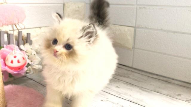 日本のラグドールちゃんとは全く違う毛吹きとお顔の丸さ素晴らしい血統を受け継いだ子猫ちゃん⑤黄ピンクリボン