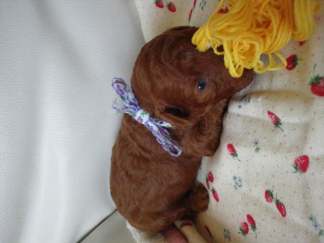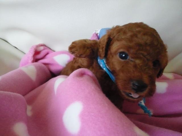 一般家庭で、トイ・プードルの自家繁殖をしています。人気のテディーベアカットの似合う、丸顔のコから、小ぶりのタイニーサイズの子犬達が生まれています。