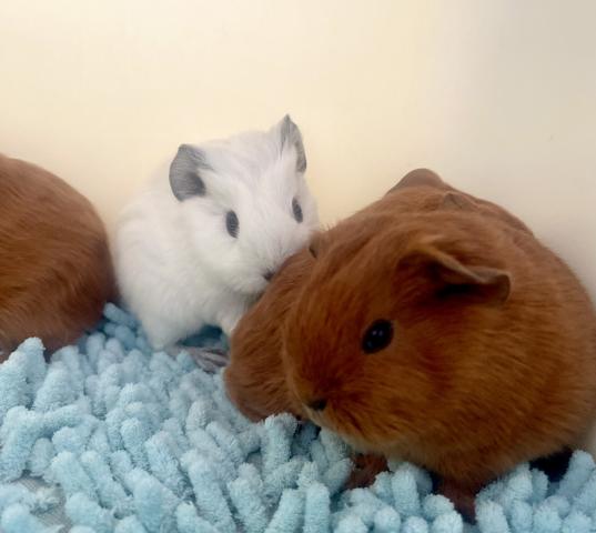 小動物はスキニーギニアピッグ、ロシアンスモークモルモット、テデイモルモットのブリーディングも手掛けています。お顔の可愛いモルモットのブリーディングを心がけています。