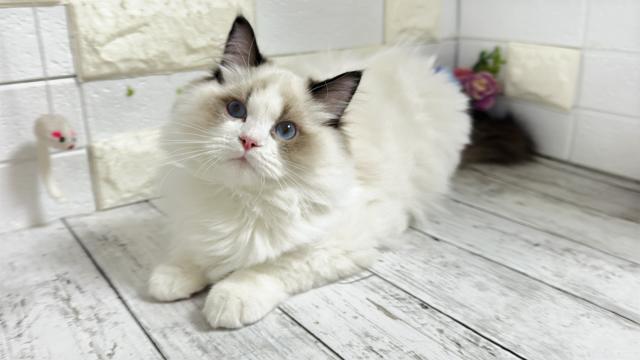 日本のラグドールちゃんとは全く違う毛吹きとお顔の丸さ素晴らしい血統を受け継いだ子猫ちゃん②(薄ピンク)