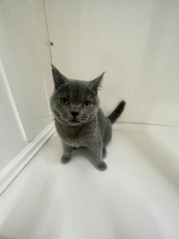 魅惑的な瞳と雰囲気をかもし出し、なんとも惹きつけられるグレーのカラーが美しいブリティッシュショートヘアの猫ちゃんです。