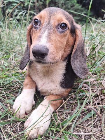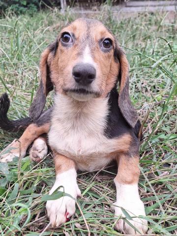 成犬時の容姿は可愛い大きなお耳、愛嬌たっぷり短いあんよの胴長体系の15キロ程度に成長する中型犬です。