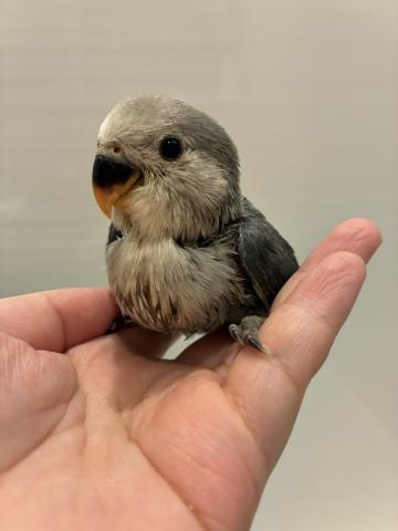 手乗り訓練中で、指にちょこんと乗る姿がたまらなくかわいいですよ💕