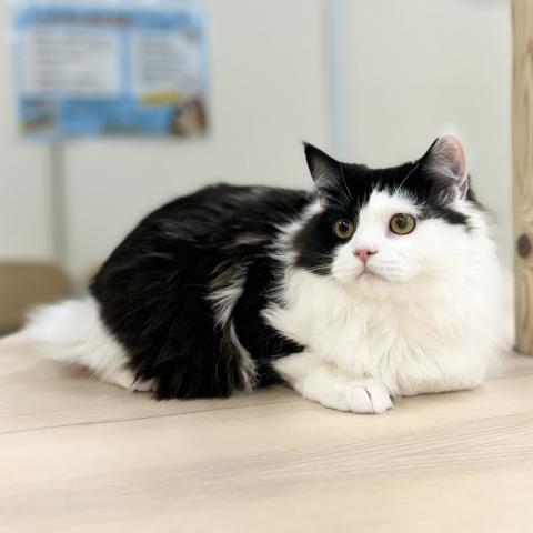 つぶらな瞳と白黒模様のコントラストが印象的✨模様のせいで左目が小さく見えるのはご愛嬌🥰
