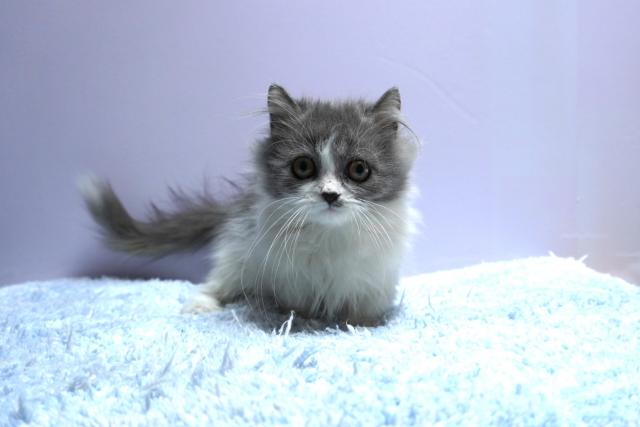 人気のブルー&ホワイト。ペルシャ譲りのエキゾチックフェースが魅力的です。お口の周りが白くてかわいいのもポイントアップ。