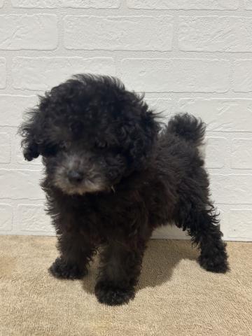 ドワーフ体型のむっちりボディーにくるくるの毛並みが可愛いです💕顔立ちも整っていて美人さんです☆お写真では全体的に黒っぽくて色や可愛さが伝わりにくいので、ぜひ抱っこしに来てくださいね。しっぽふりふり元気いっぱいで甘えてきすよ〜♡