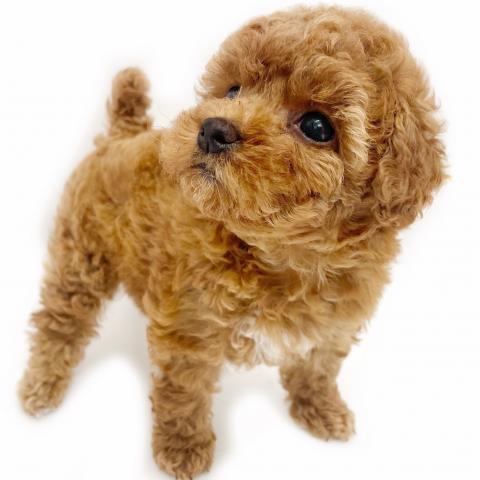 プードルらしく緩くウェーブしたカーリーヘアはボリュームのある毛量で触り心地もgood!