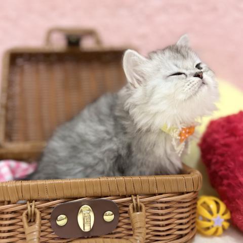 兄妹の中では唯一の長足ちゃん💡はっきりとしたシルバーカラーのもふもふな毛並みは手触りバツグンです♪