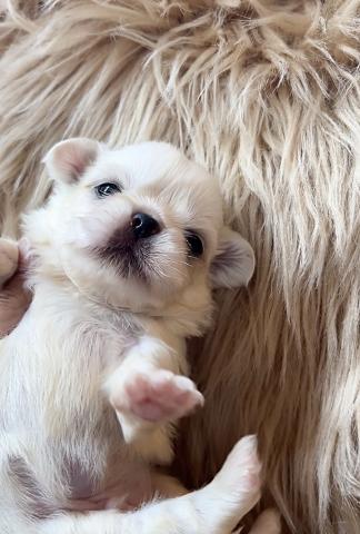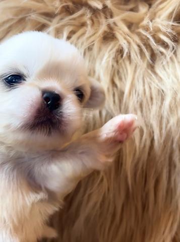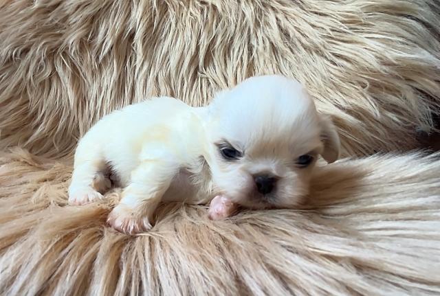 まだ小さな手足で一生懸命よじ登ろうとする姿が、たまらなく愛おしいペキニーズの男の子です。🍼