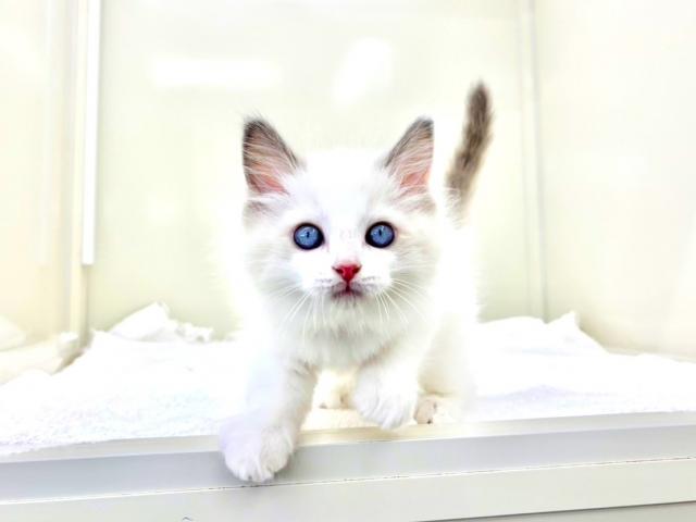 真っ白な被毛とのコントラストが美しくまさに“ブルーポイントバイカラー”の理想形♡