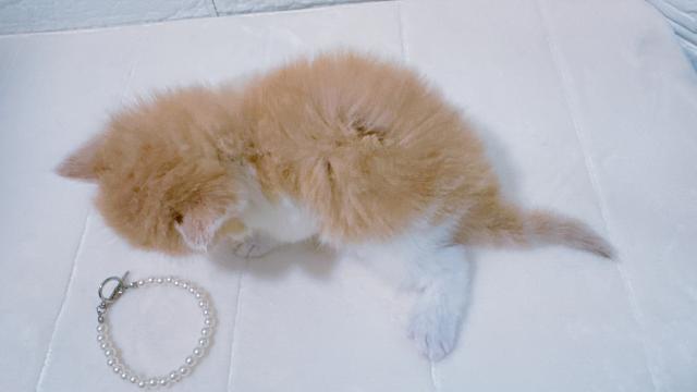 瞳は今は青いですが、パパが青、ママがオレンジなので、2か月くらいにならないと色がわからないです。