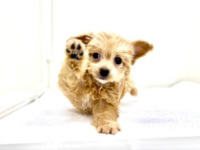 毛質はトイプードル譲りのふわふわ感、見た目はチワワのコロッとしたフォルムで、まさに両方のいいとこ取り!