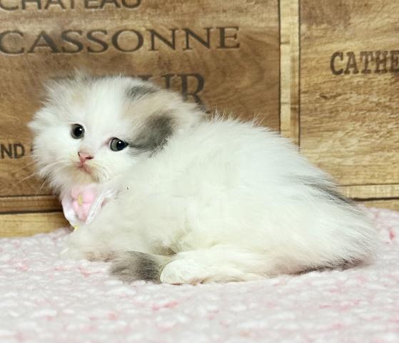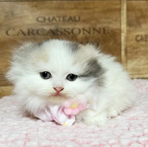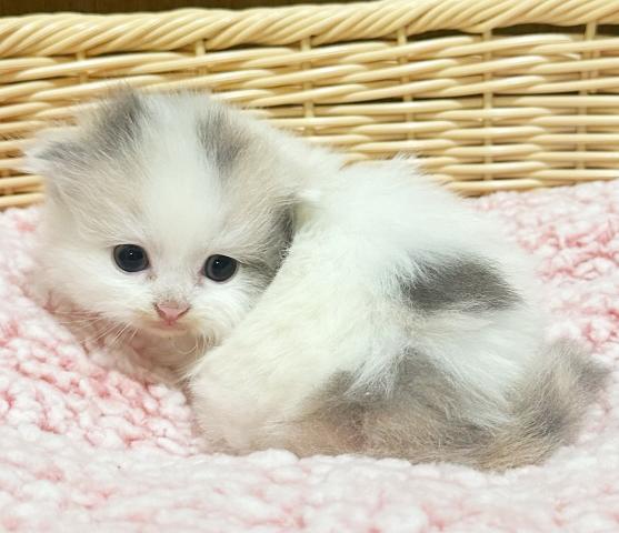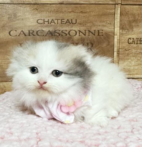 折れ耳極短足、長毛の女の子です。