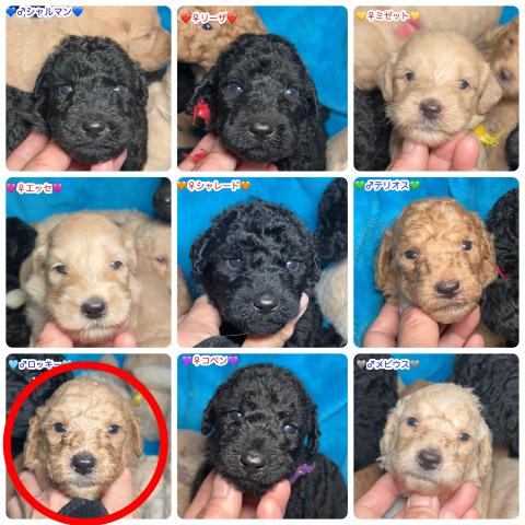 母親は遺伝子検査済みで、ラブラドゥードルの検査項目32種類の遺伝病についてDM だけキャリアで他はすべてクリア、父親は、DM、PRA、vWDの3項目検査済みですべてクリアなので、子どもたちは発症しません。