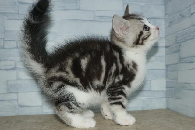 両親の毛色と体重は、(父)ブルー&ホワイト:3.0kg (母)シルバーパッチドタビー:3.0kg