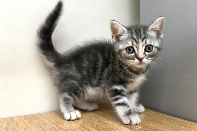 両親の毛色と体重は、(父)ブルー&ホワイト:3.0kg (母)シルバーパッチドタビー:3.0kg