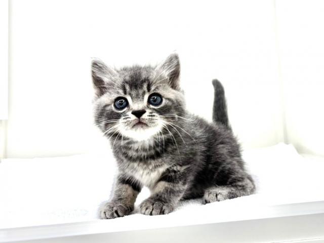 ブルータビー特有の柔らかいグレーの毛色に目元を引き締めるようなくっきりしたアイライン☆