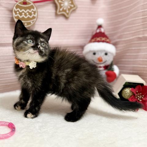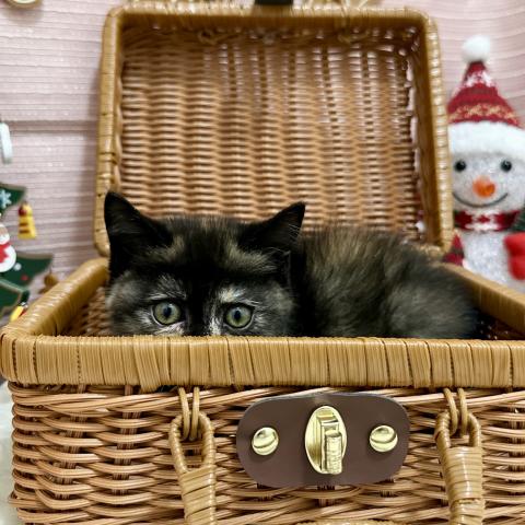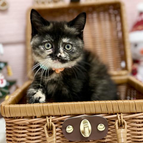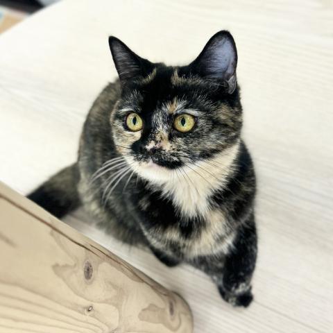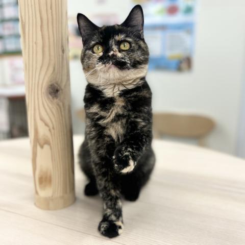 サビ柄にクリーム色のあごが映える優しげなトーティカラー✨まん丸なお顔と瞳、そして眉毛みたいなワンポイントがたまらなくキュートです😻