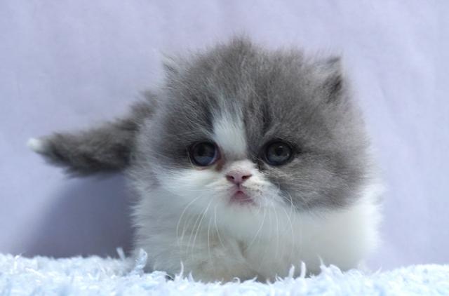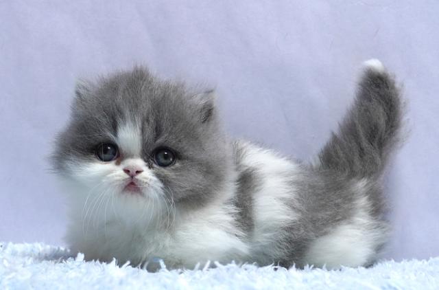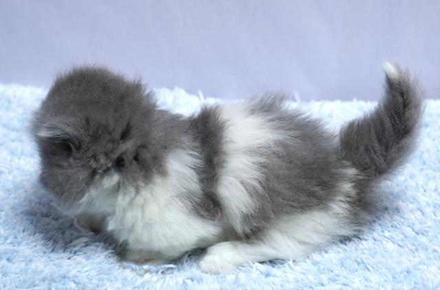 人気のブルー&ホワイト。丸いお顔のフワモフちゃん。シッポの先が白くなっているキャンドルテールの子は幸せを運ぶと言われています。