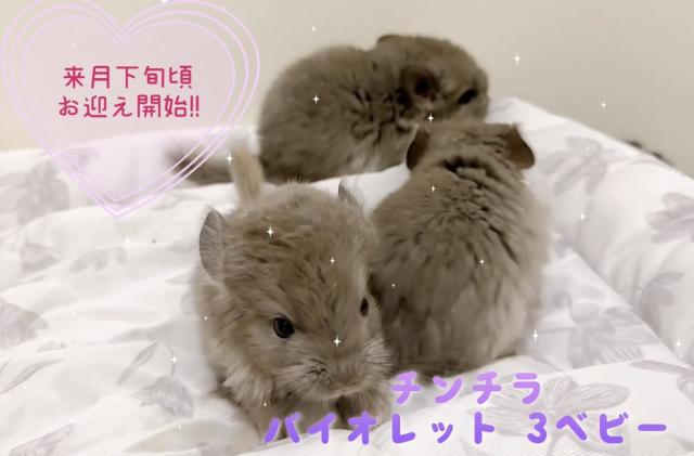 チンチラバイオレットのベビー3匹生まれました(^^)