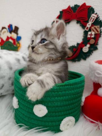 くりくりおめ目とシルバーパッチドタビーの毛色のように上品で、静かな存在感。