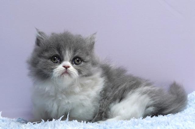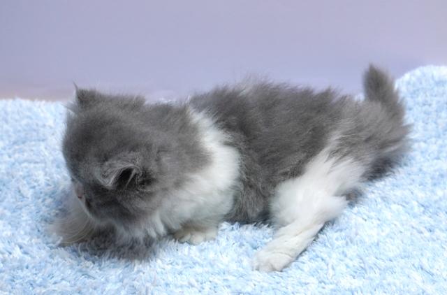 人気のブルー&ホワイト。まんまるのお顔にま~るい大きなお目目が可愛いハチワレちゃん。ショールを巻いたようなカラーも素敵です。