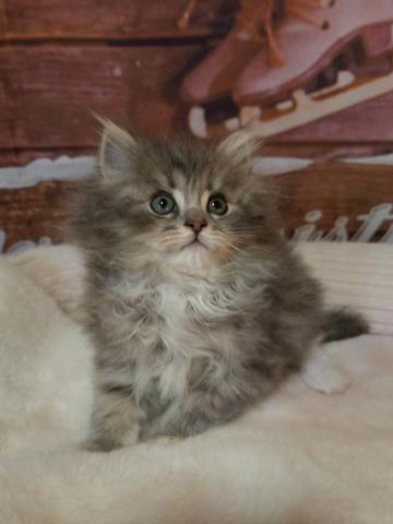 キラキラ瞳とブルータビー&ホワイトの毛量あるフワフワな毛並み💗