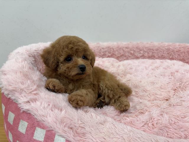 カラーは定番人気のレッドカラーになります。小さな身体と可愛い整ったお顔ですので、どんな髪型も似合うと思います。モフモフの毛量なので、全体的に丸みをつけても可愛いと思います。素敵なトリマーさんを見つけていただき、色々と相談をしながらトリミングを楽しんでもらえればと思います。