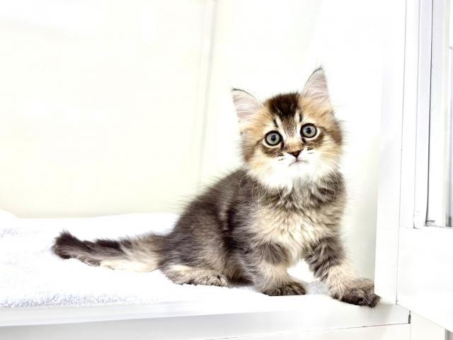 毛色はブラウンタビー。くっきりしすぎない、どこか淡くやわらかな色合いで、サイベリアンらしいふんわりとした被毛と相まって、とても穏やかな印象を与えてくれる子です。見ているだけで心が落ち着くような、不思議な安心感があります(´ω`)