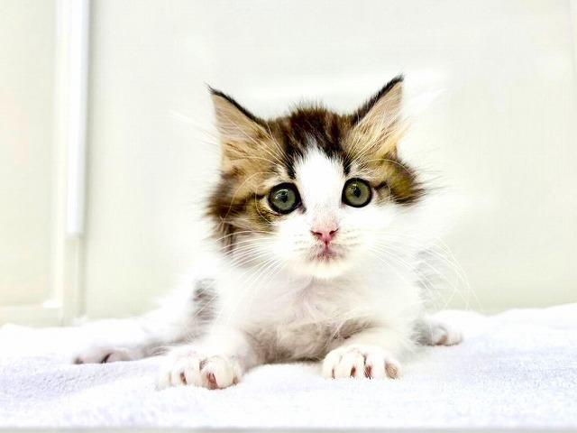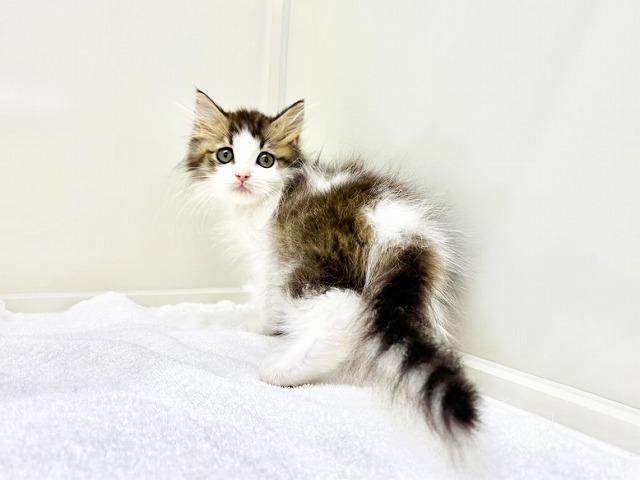 ブラウンタビー&ホワイトの毛色は、自然のぬくもりを感じさせる深みのあるカラー。